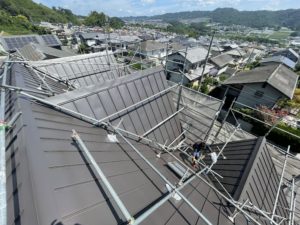 既存シングル屋根からガルバリウム鋼板材立平葺きで