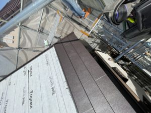 セメント瓦からスーパーガルテクトに葺きかえを施工させていただきました。