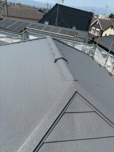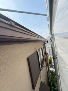 スーパーガルテクトによるカバー工法を施工し、既存の樋を撤去し新たに樋を取付しました。