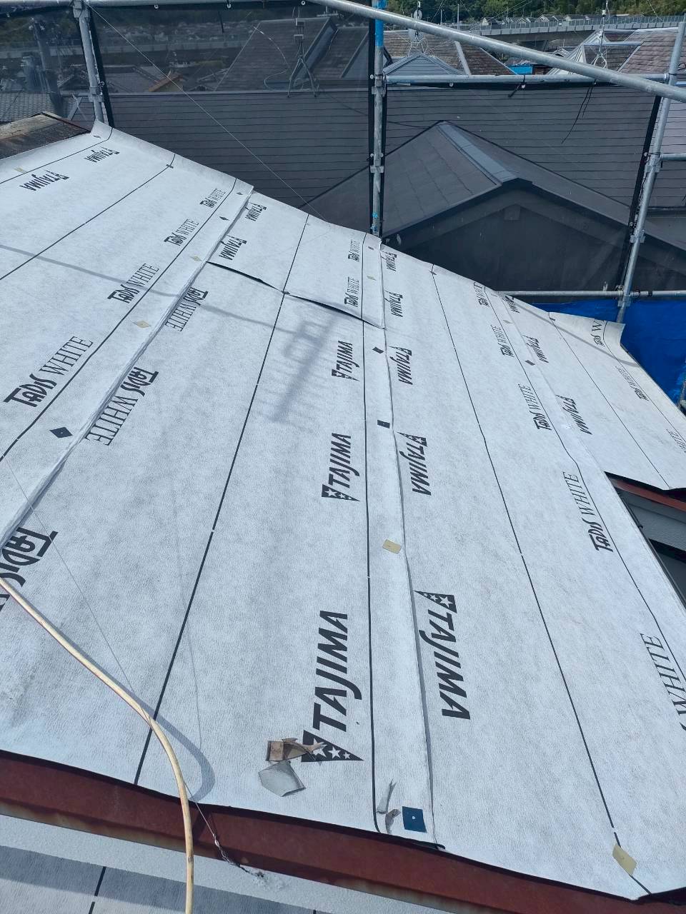 今回の施工事例はスーパーガルテクトによるカバー工法と、樋の取替工事を投稿します。施工前の屋根はカラーベストですが写真のような白い状態は劣化が進んでおります。屋根等お困りでしたら、お気軽にお問い合わせください。