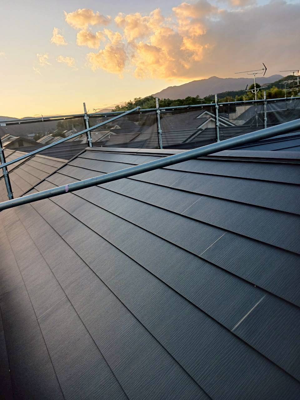 本日もIG工業のスーパーガルテクトをカバー工法にて施工させていただきました。スーパーガルテクトはちぢみ塗装による上質な質感と豊富なカラーバリエーションがあり、建物の外観デザインに合わせて選択できます。 ちなみにちぢみ塗装とは塗装後に加熱することで表面に独特のシワ模様(ちぢみ)ができる特殊な塗装方法になります。