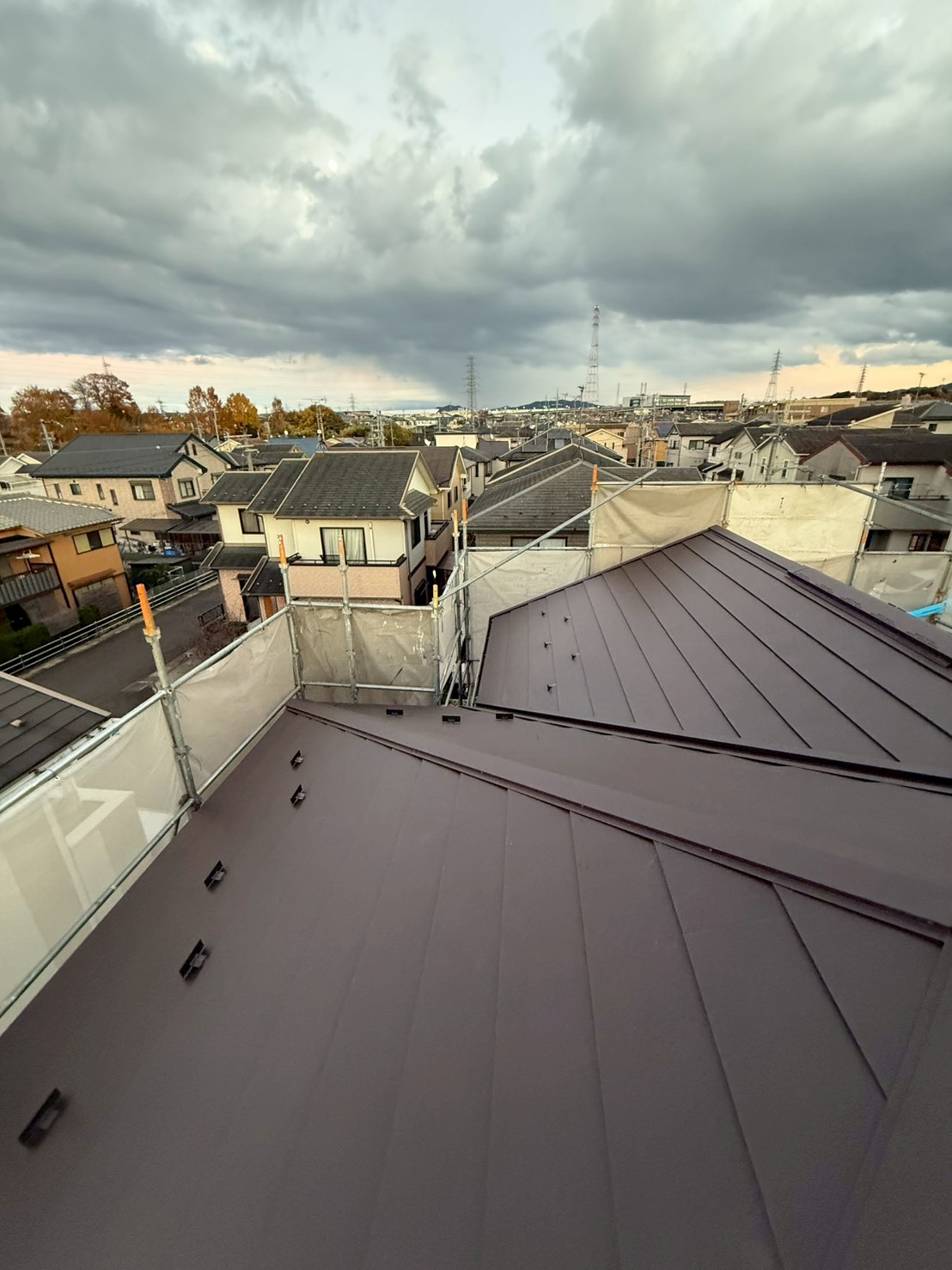 屋根の形状は寄谷で施工期間は約2日間になります。