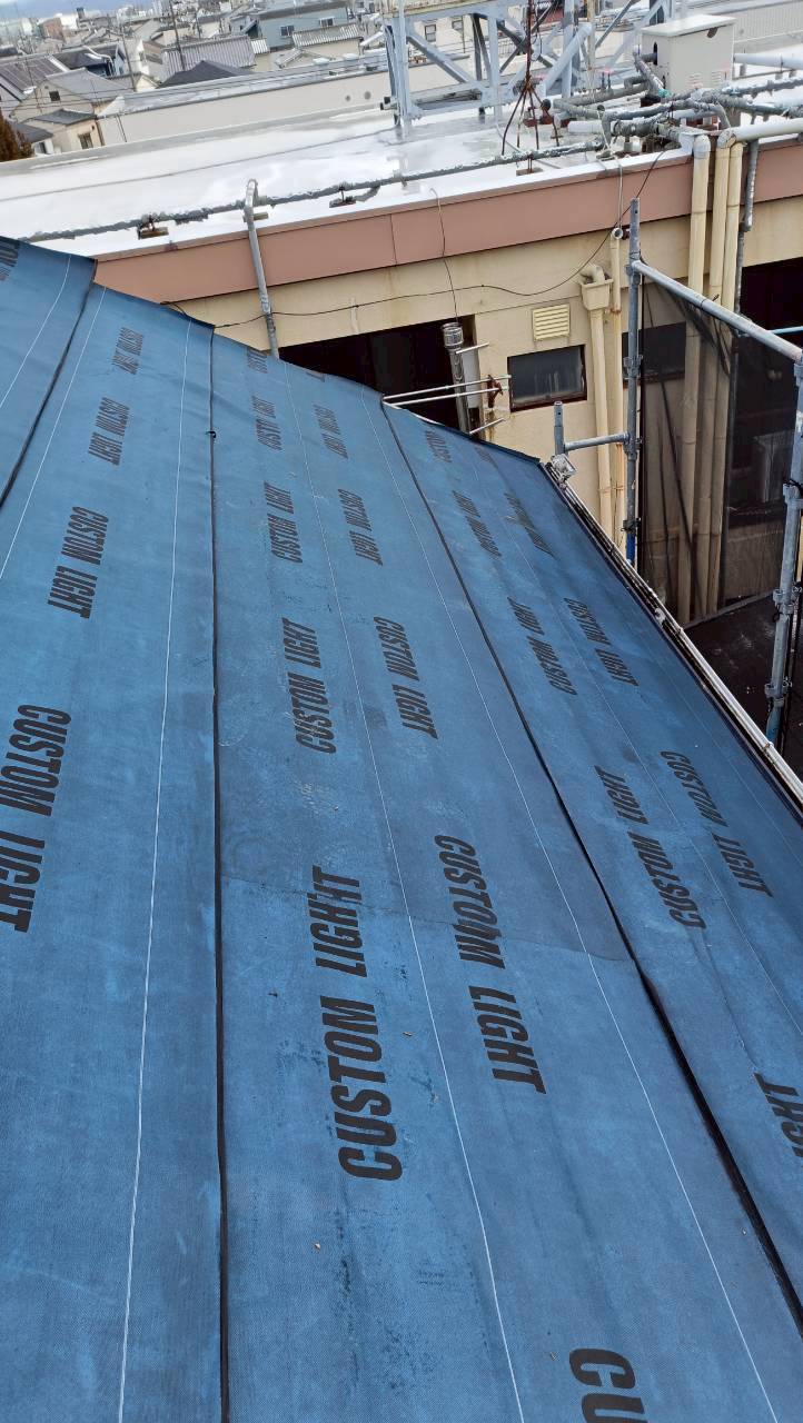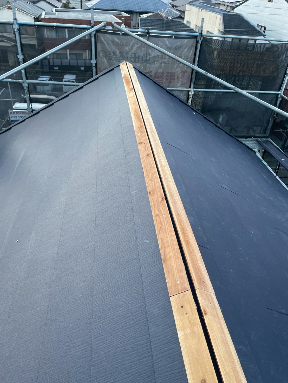本日は切妻の大屋根をIG工業のスーパーガルテクトをカバー工法にて施工しました。