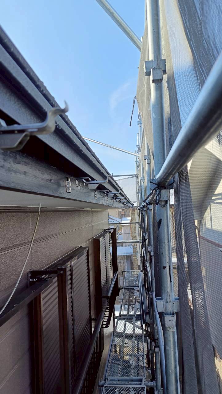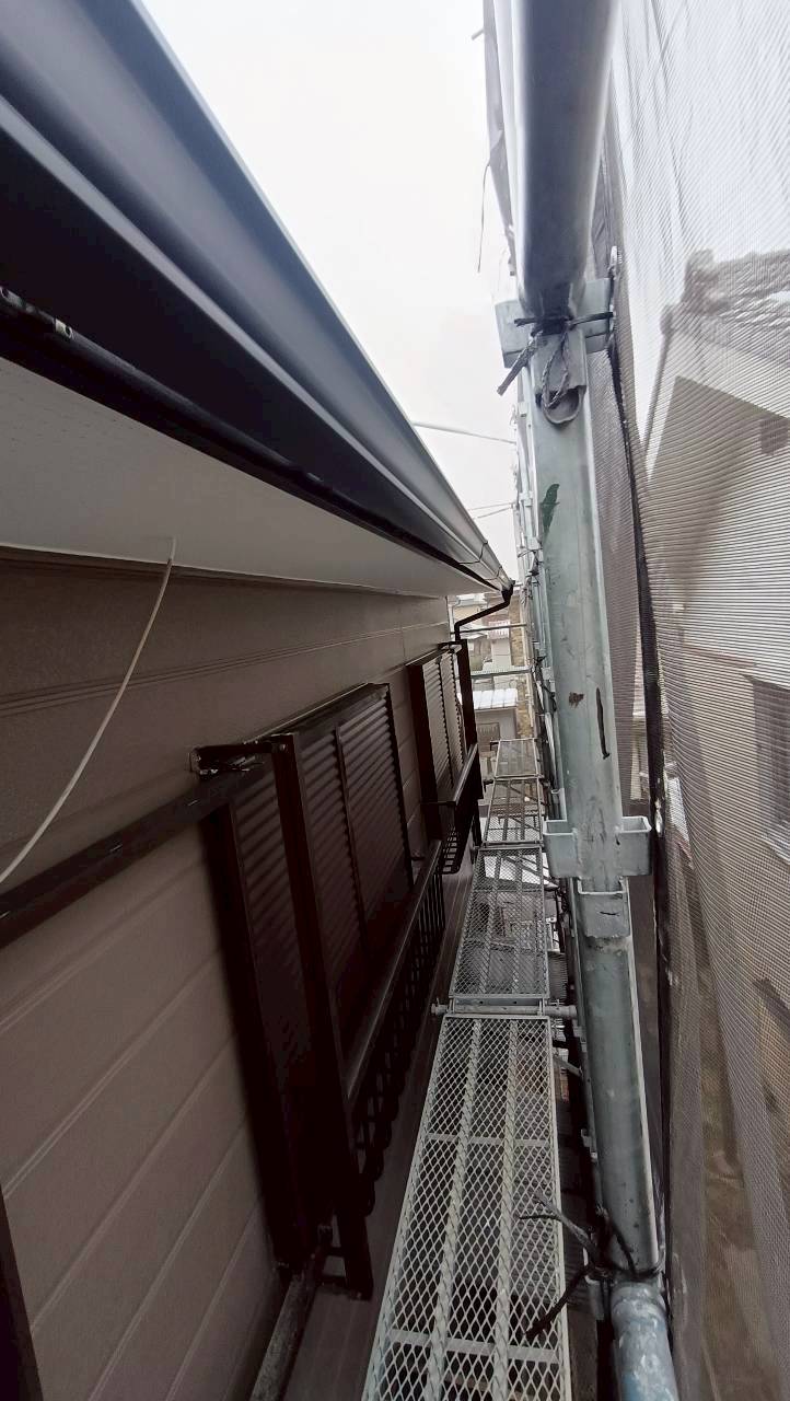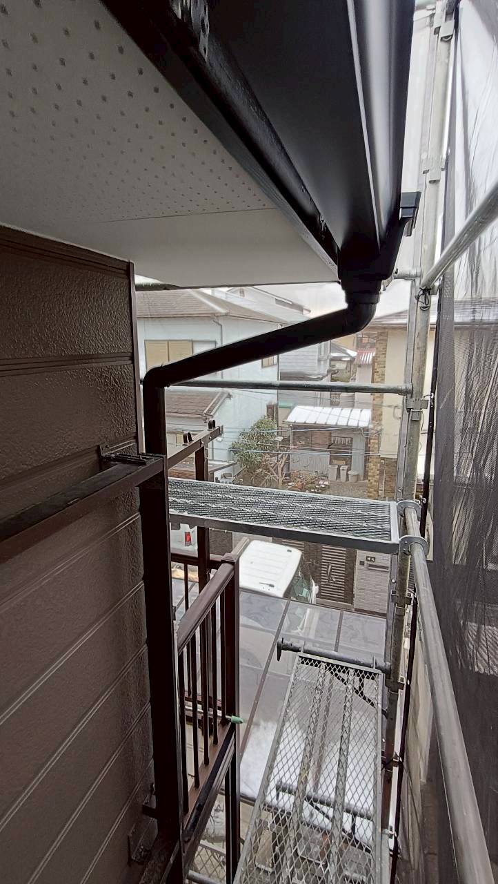 今回の工事は以前、カバー工法を施工させていただいた物件の外壁塗装工事が終わりましたので樋を施工しました。メーカーはパナソニックのPC50のブラックになります。