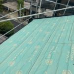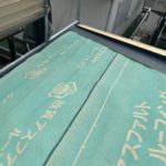 既存カラーベストの上に新しく防水シート(ルーフィング)を施工して行きます。雨漏れや結露を防ぐのに非常に大事なものです。