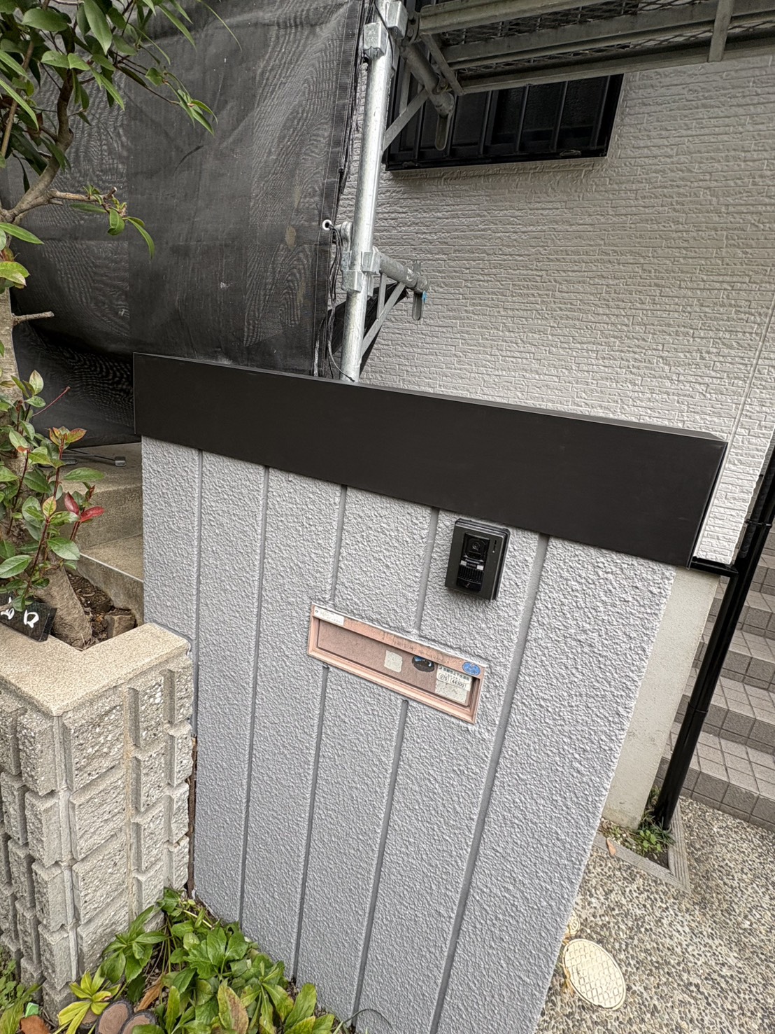 本日は玄関の目隠し壁の天端に笠木板金を2件施工をしました。