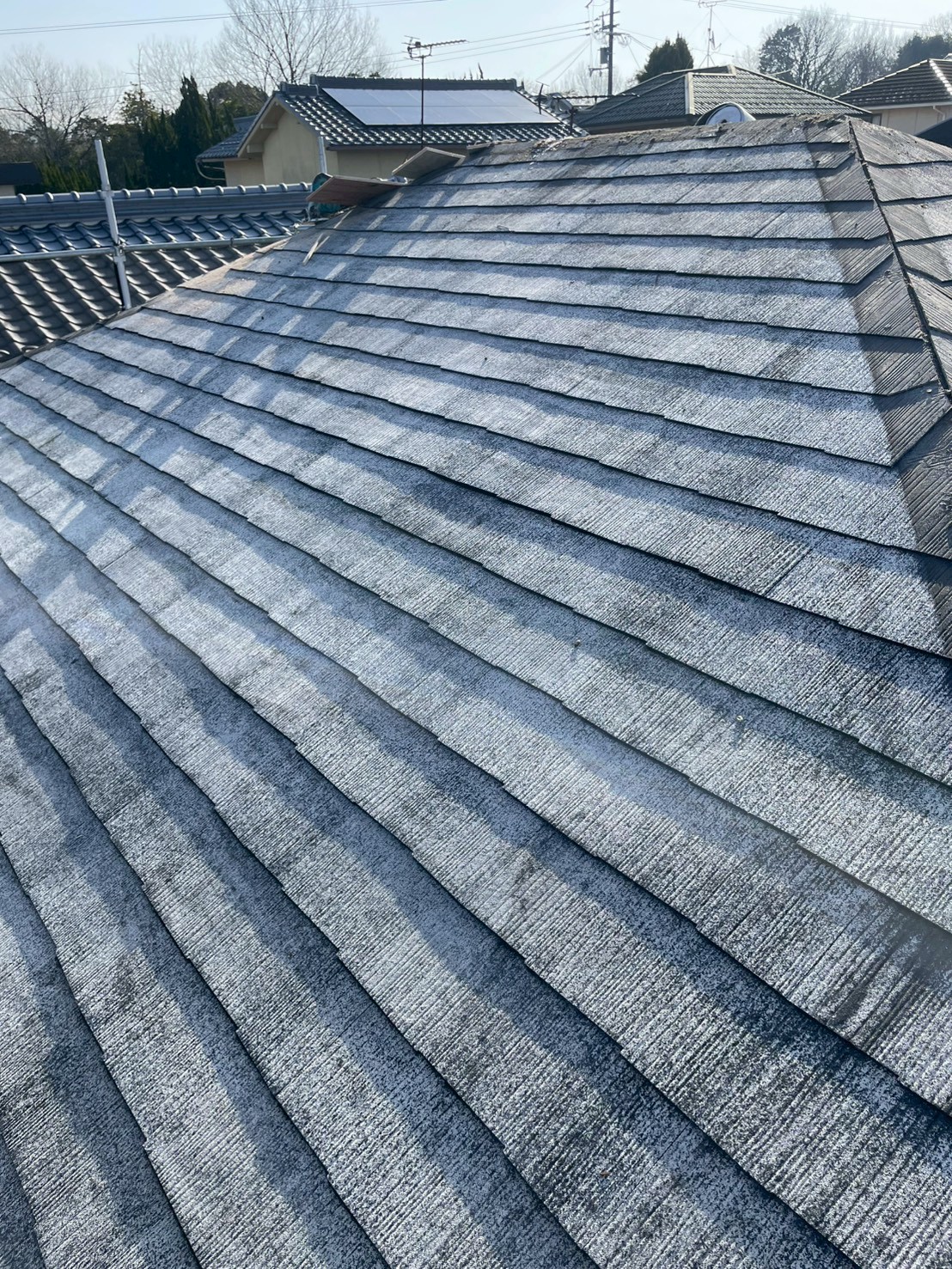 IG工業のスーパーガルテクトにてカバー工法を施工しました。大屋根のみの寄棟になります。施工は2日掛かりました。お陰様で今後もガルテクトの案件があります。気になる方がいらっしゃいましたらお気軽にお問い合
